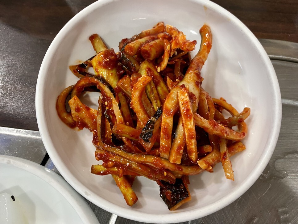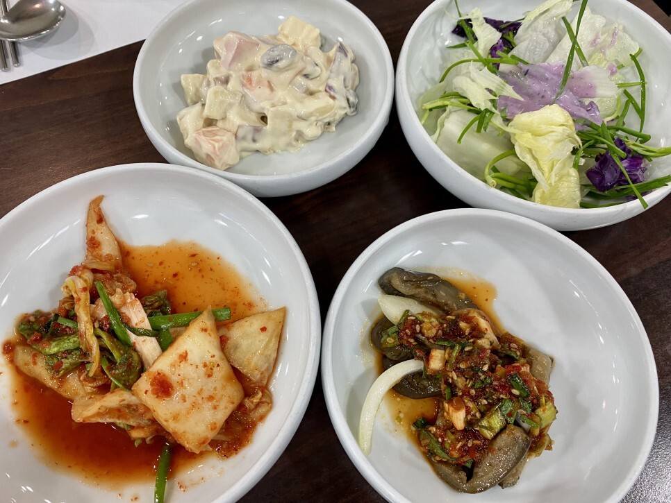 기본 반찬 가지 김치 사라다 샐러드